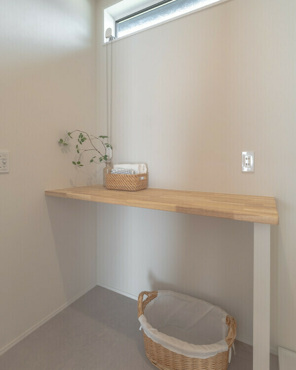 洗濯ものを畳んだり、お風呂に入るときの着替えを置いたりできる便利なカウンター。