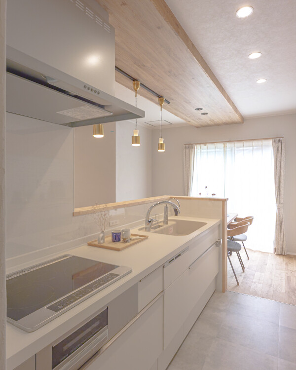 ダイニングキッチンには大きな窓を設け、明るさと開放感をプラス。