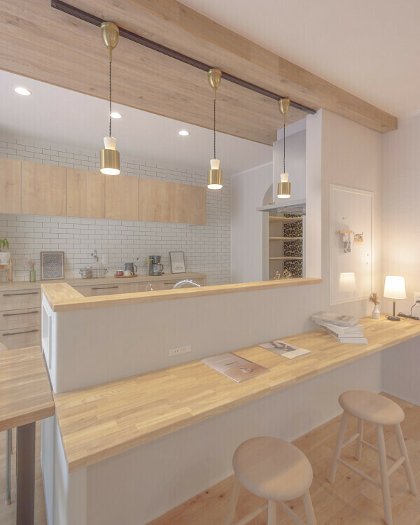 子どもたちの勉強やワークスペースとしても活躍できるカウンター。