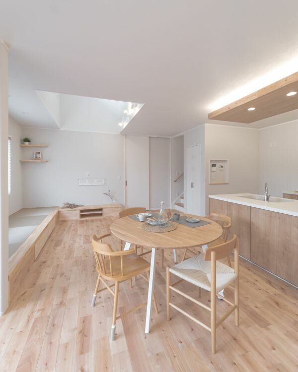 日当たりの条件に合わせて上から光を取り込む設計とすることで、一日を通してやさしい光が家族の時間を照らします。