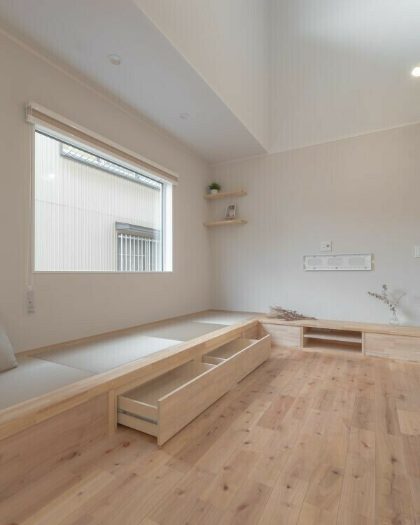 畳の小上がり部分には造作の引出し収納を設けて、暮らしやすさにもひと工夫を。