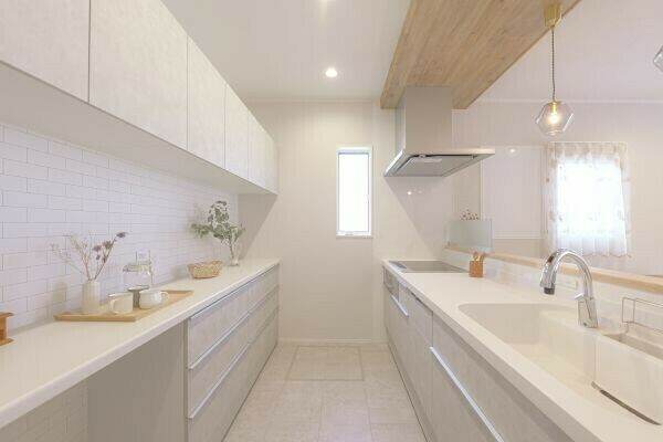キッチン回りは淡色カラーでまとめて優しい雰囲気に🌿