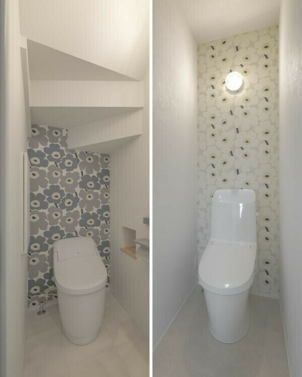 奥様お気に入りのクロスを1F・2Fそれぞれに採用。入るたびにときめく空間になりました✨