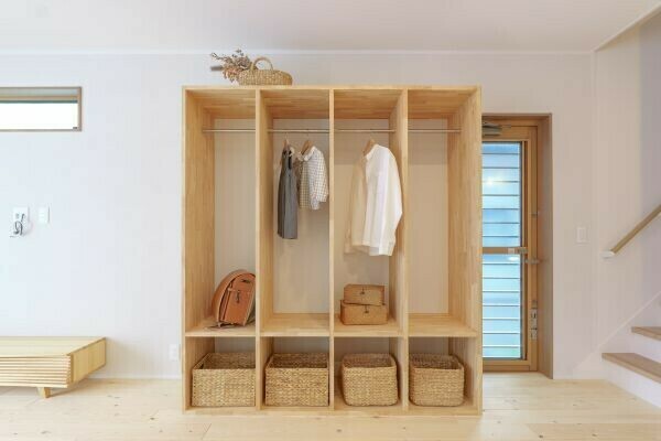 家族それぞれの持ち物が、自然と片付くファミリーロッカーをリビングに設けました。