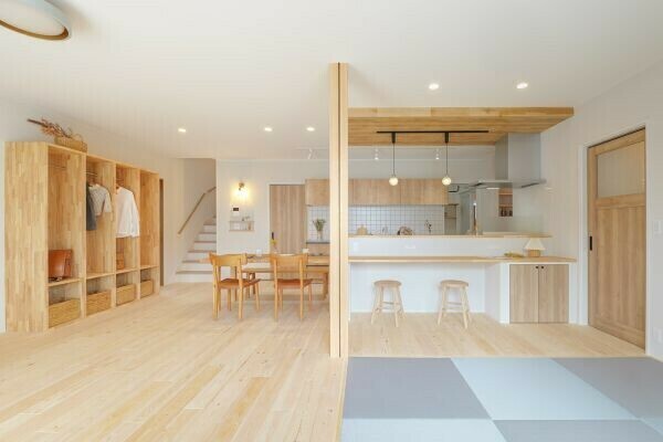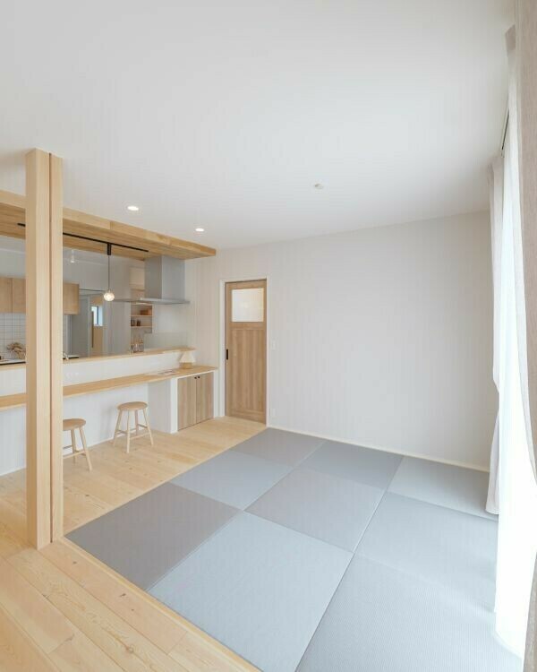 リビングの一部にゴロゴロ寝っ転がれるフラットな畳スペースを。リビングに畳があるって実はすごくいいかも👀✨