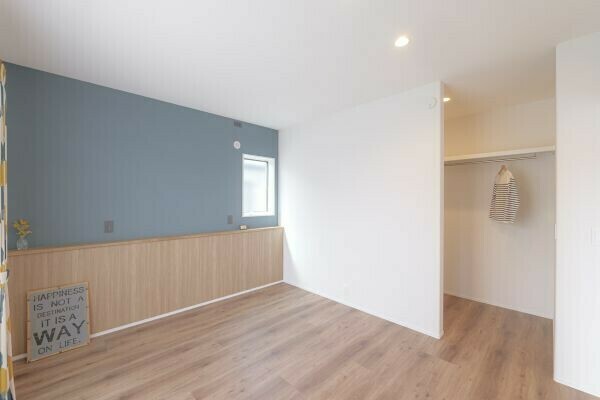 寝室はちょっぴりアメリカンな雰囲気に。奥行きのあるウォークインクローゼットもあります。