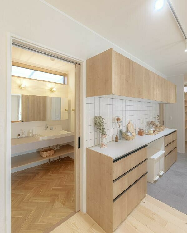 料理と洗濯を行き来できる動線を確保し、毎日の家事が負担になりにくい工夫を取り入れました👕
