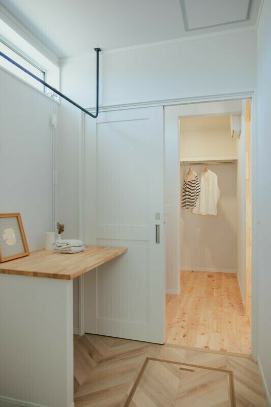 水回りは「ウォークインクローゼット→洗面→脱衣→浴室」の並びが一直線になっているのがポイント。