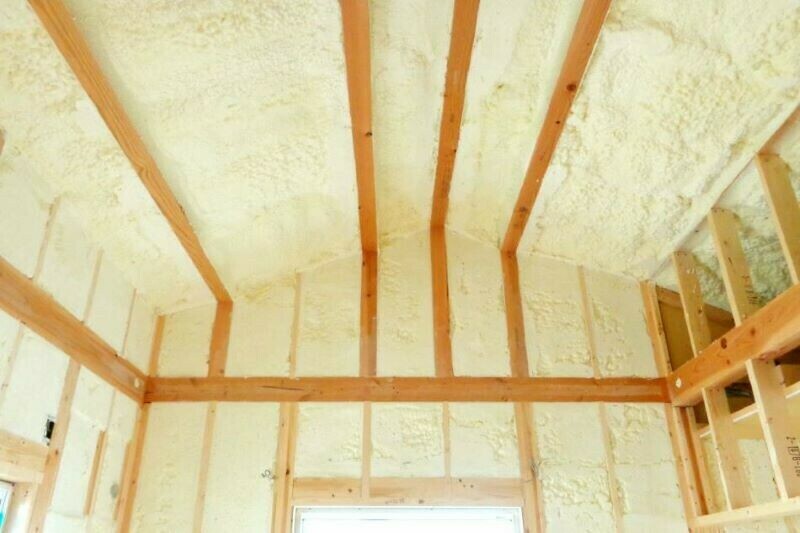 これはマシュマロ断熱といって、もこもこした「ウレタンフォーム」というものを家じゅうの壁に吹き付けしています。