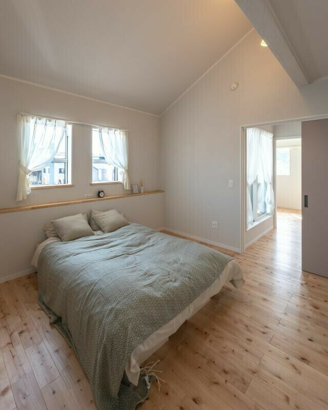 8帖の寝室は勾配天井で高くなっているので、開放感がでて8帖より広くみえます!