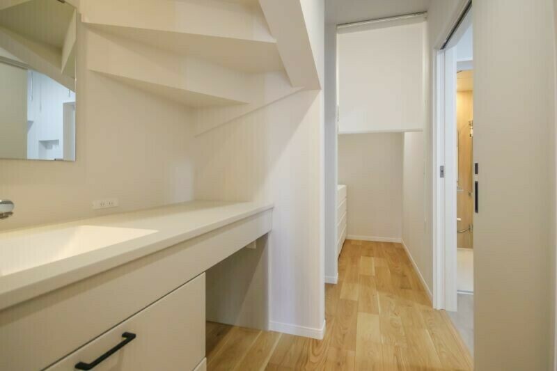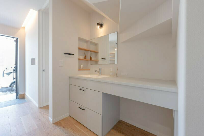 どこからでも行きやすい家の中心にある洗面所