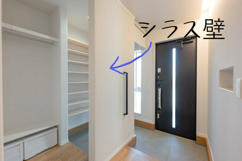 玄関に入ってすぐのシラス壁で消臭対策