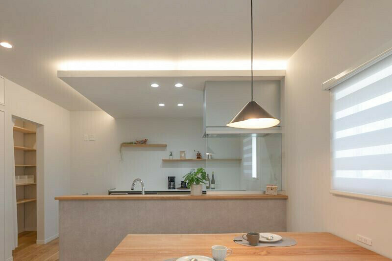 憧れが叶ったキッチンの折り下げ天井&間接照明の組み合わせ