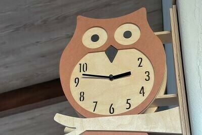 リビングには可愛い木製のフクロウ時計