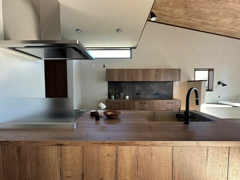 【完成見学会】理想のキッチンがあってダークトーンの木に囲まれた32坪の平屋(浜松市中区富塚町)