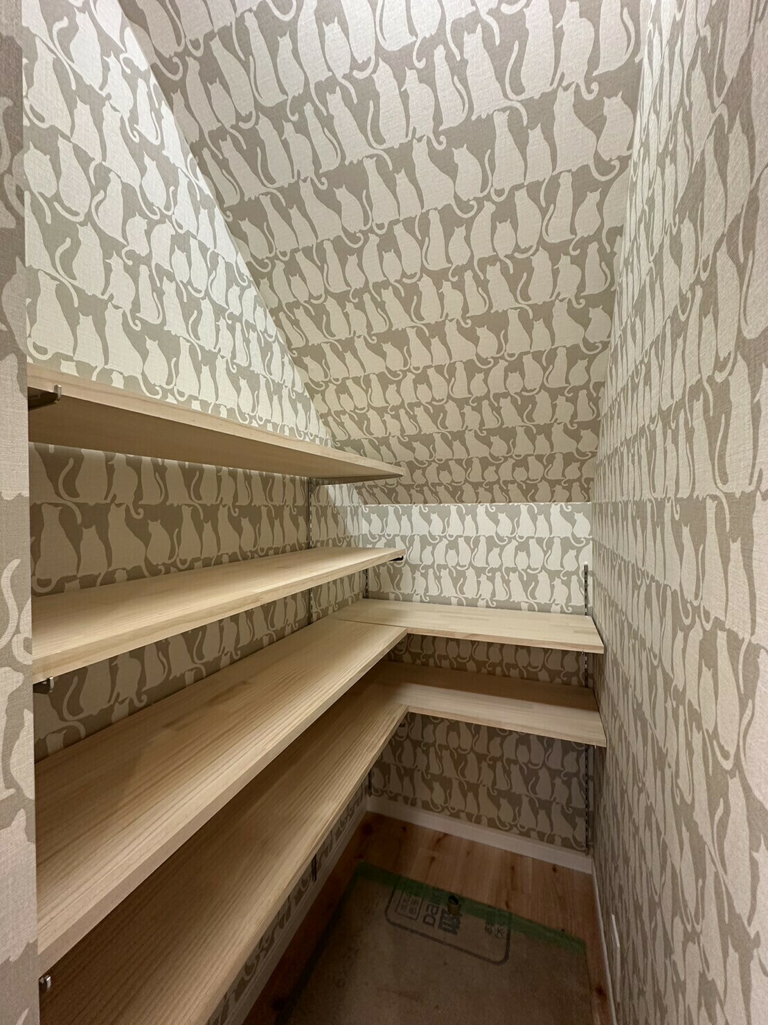 ④階段下パントリーの猫柄クロス