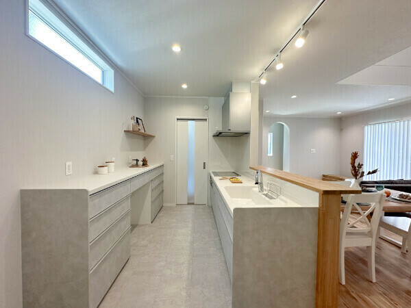 キッチンは玄関から直接アクセスできる回遊動線の間取りにしました。