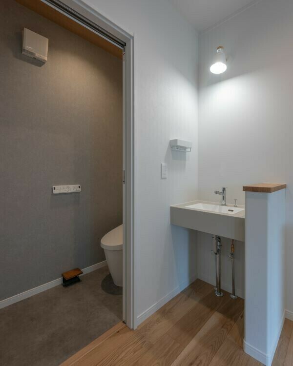 2階のトイレはちょっと落ち着いたグレーの雰囲気にしました。