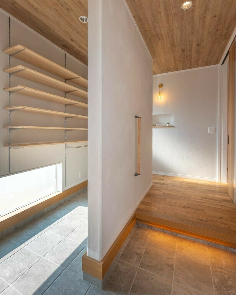 「家じゅうの要所要所に収納スペースを設ける」というのではなく、「広い収納スペースの中を区切って使う」という考え方。