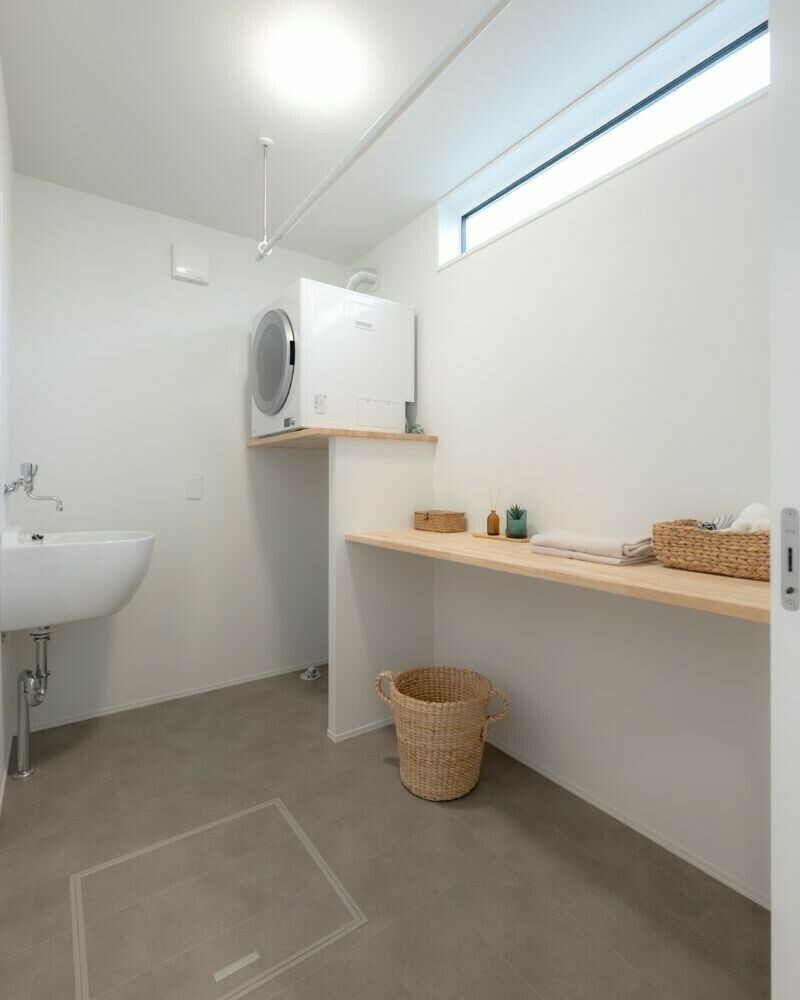 ランドリー脱衣室には、漬け置き洗い用のスロップシンクとガス乾燥機乾太くんを設置しました。