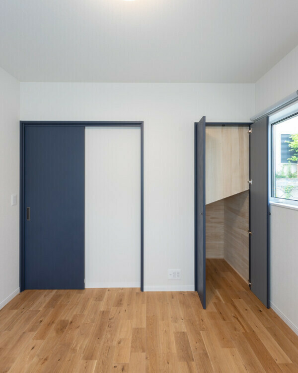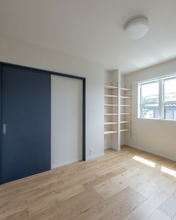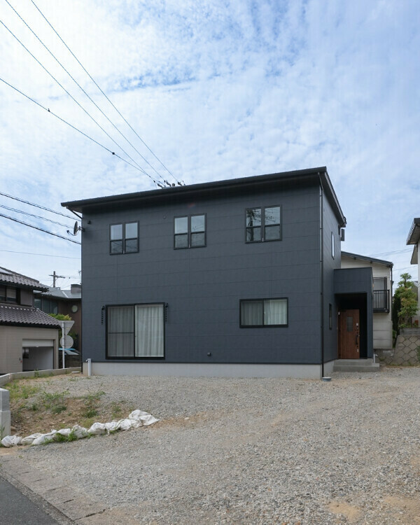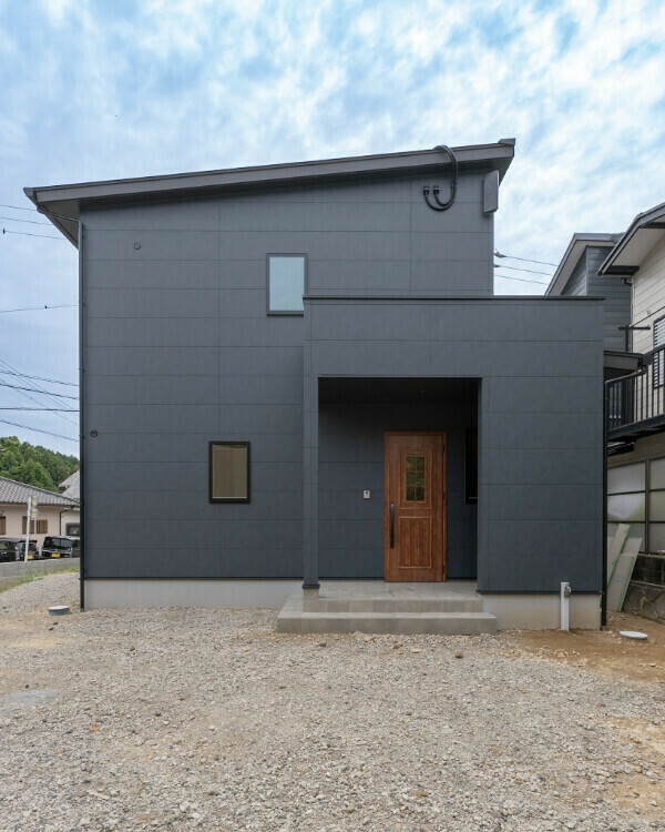 外壁は旭トステムのサイディング材「SHiZEN(シゼン)」を採用。フッ素加工とシーリングレスが特徴の外壁材です。色はマットな質感のオボロネイビー。