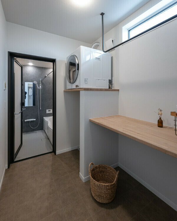 浴室⇔脱衣兼ランドリー⇔洗面⇔ファミクロが1列になった、家事効率のいい間取りです。