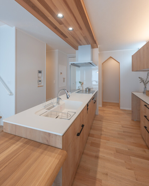 広々としたキッチンは、ご夫婦が並んで料理を楽しめるゆとりのあるスペースに。