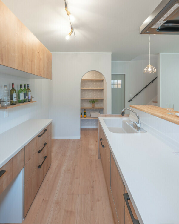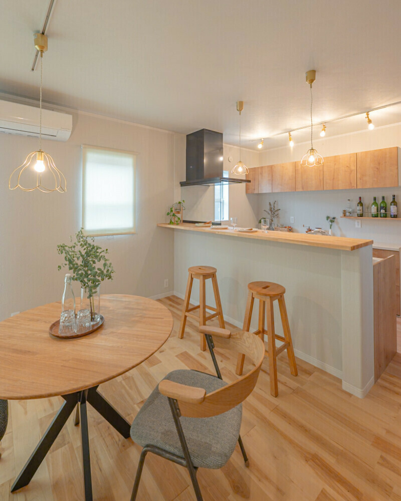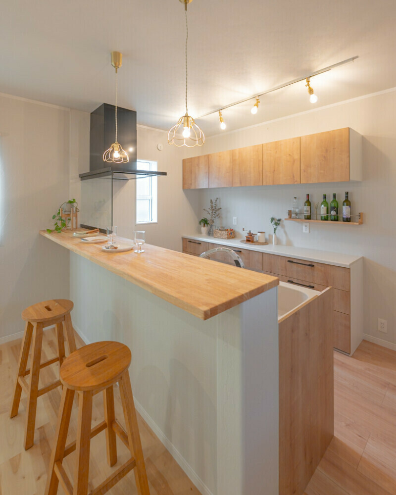 カウンターバーのような雰囲気にしたいけど、かっこいい系ではなくナチュラルで可愛いテイストを目指しました。