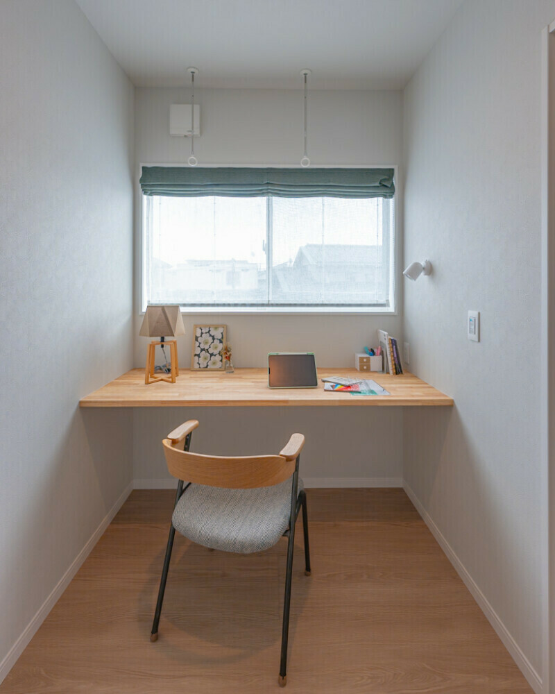 イラストが趣味の奥さまのために、2階物干しルームの一角に専用の作業スペースを増設。