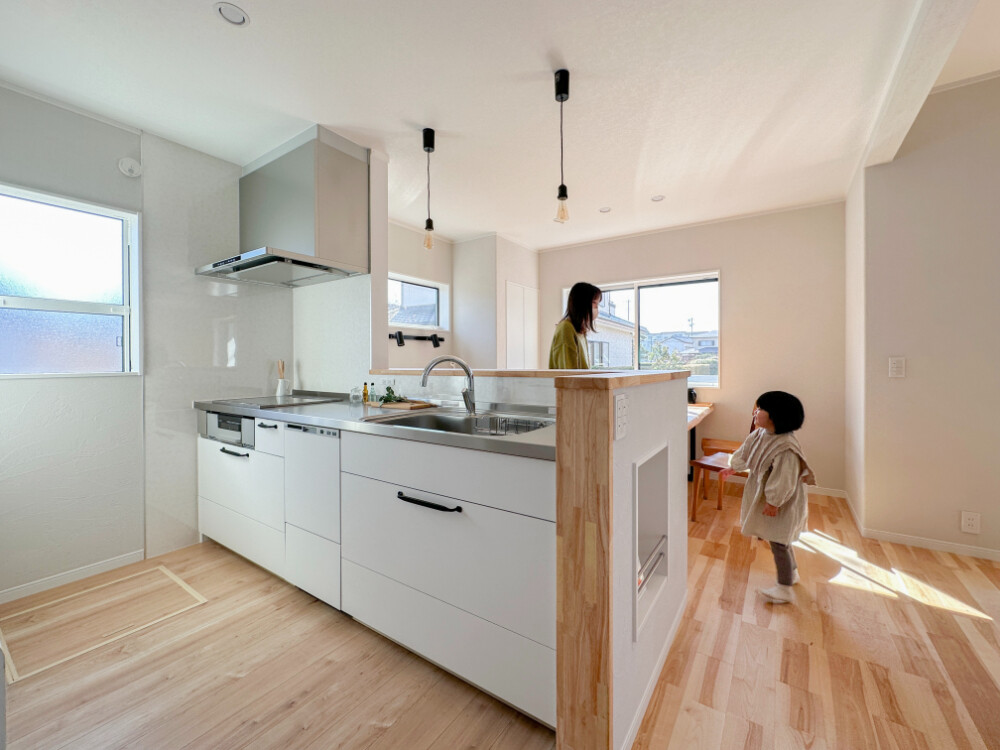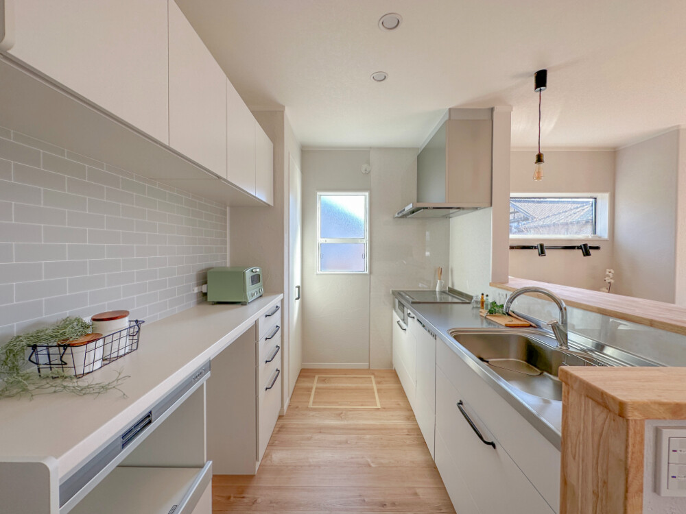 キッチンはフロントオープンの食洗機や、自動洗浄付き換気扇フードで少しでも家事ラクを目指しました。