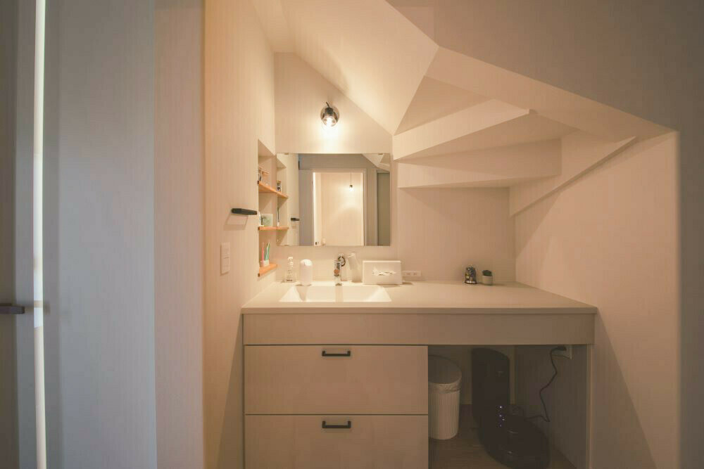 収納か所には、すべて扉や間仕切りをつけることで極力 ”見せない収納”にこだわったり、収納ボックスの配置スペースを事前に計画しておくことで、すっきりと収まるような寸法にしたり、随所に工夫をされました。
