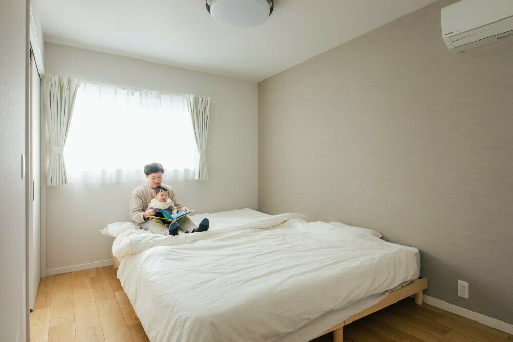 白とグレーを基調に色味を統一して、シンプルで美しい内観デザインに仕上がっています。色や柄を極力入れないコーディネートにすることで木の質感が空間に映えます。