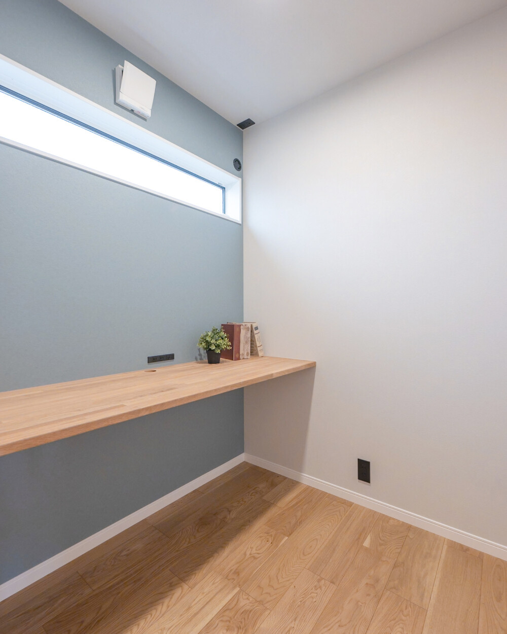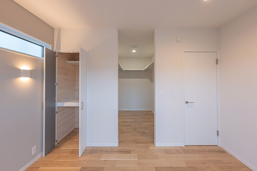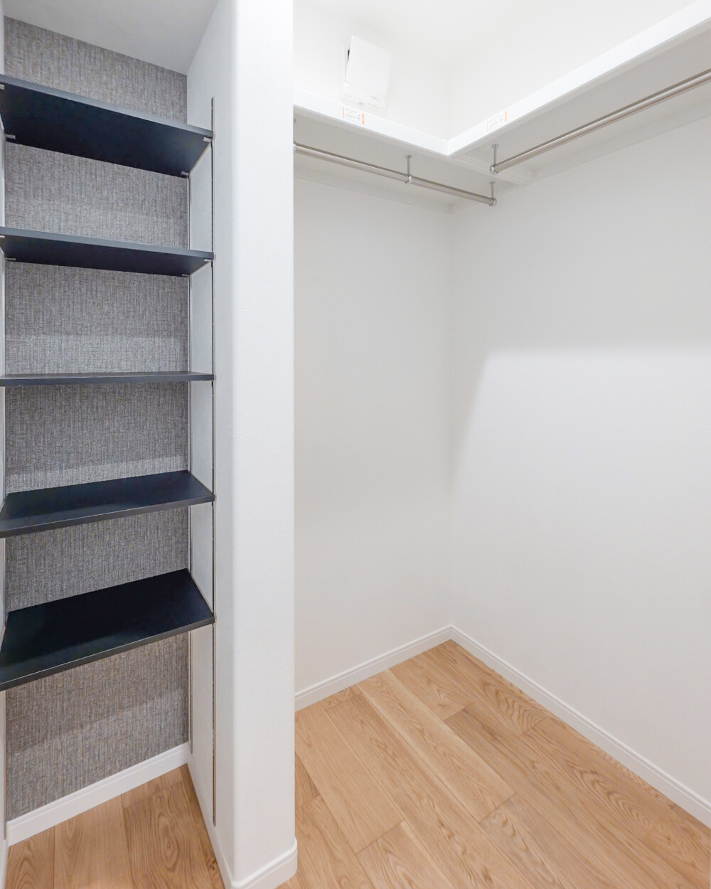 ファミリークローゼット内には書類等をしまう収納棚を造作しました。