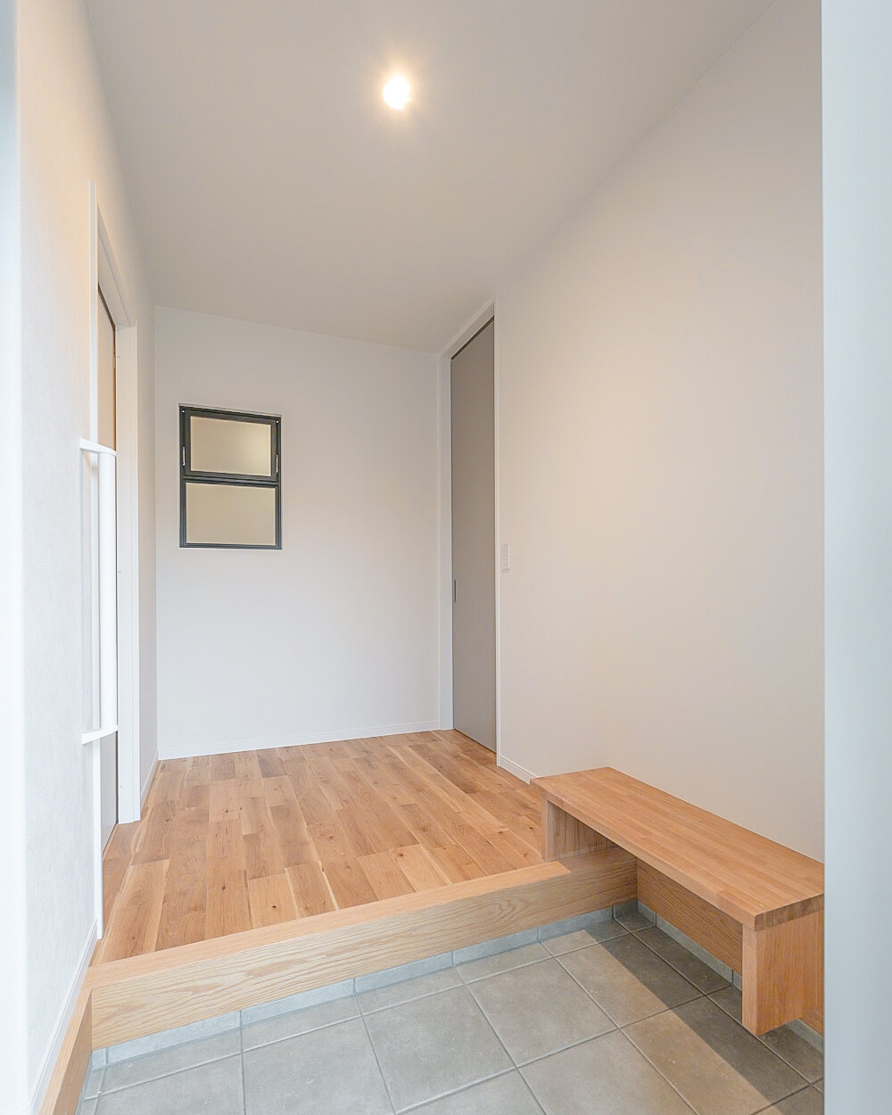 子どもが2階から落ちないようにと、2階ホール部分は壁にして内窓をつけました。食事のニオイが2階までいかず、またエアコンの熱効率も良くなるためお施主様も満足。